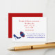 O cartão de convite de casamento do tema do futebol divertido é feito em branco, na frente, e vermelho na parte de trás. Gráficos de alto salto azul chutando um futebol vermelho, branco e azul enfeitam a parte inferior esquerda da frente da placa. Texto em vermelho e azul na frente, e branco, no verso, está pronto para personalizar com suas informações de casamento. Excelente adicional ao nosso jogo de casamento do Patriótico futebol.