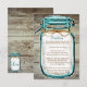 Cartões de Recipiente de Direções de Casamento em Madeira Rústica com Pote de Mason para serem usados para direções ou acomodações para incluir com seus convites de casamento. Cartão de Pote de Mason Country Rústico com um sotaque azul turquesa em um fundo de madeira de celeiro impresso.