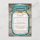 Cartões de Enfeite de Direções de Casamento em Madeira Rústica com Recipiente de Mason para serem usados para direções ou acomodações para incluir com os convites de casamento. Cartão de Recipiente de Mason Country Rústico com um sotaque azul turquesa em um fundo de madeira de celeiro impresso.
