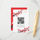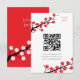 Forneça aos seus convidados detalhes extras usando este cartão de cerâmica com tema florescente, projetado para incluir um código QR que vincula a importantes informações de casamento. A frente branca apresenta flores de cereja vermelha e um ramo preto, com o texto preto e os nomes do casal a vermelho. O dorso vermelho, decorado com flores brancas de cereja e um galho preto, gravatas a suíte inteira maravilhosamente. Ideal para casamentos modernos com um toque inspirado na natureza.