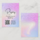 Facilite para os seus convidados comprarem presentes com este cartão de registro elegante, apresentando um gradiente holográfico brilhante rosa e roxo e um código QR. Personalize o texto e adicione os detalhes do seu registro sem esforço.