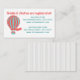Cartão De Informações Registro de Chá de fraldas de Balões de Ar Quente