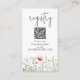 Os cartões de gabinete do registro do chá de fraldas contêm flores curinga na frente com um Código QR personalizado para onde você está registrado e seus detalhes em caracteres quicos. CORRESPONDENTE a itens na nossa coleção.