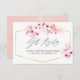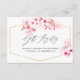 Cartão de registro de presentes de chá de noiva/casamento floral aquarela rosa com flor de sakura e moldura geométrica dourada personalizável para os detalhes do seu evento.