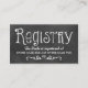 Cartões de informações sobre o registro de casamento do quadro charmoso apresentam fontes de estilo manuscrito e designs de rolagem que têm uma aparência de giz branco em um fundo que tem uma aparência texturizada de conselho preto rústico.