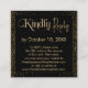 Usando duas fontes distintas, criei gráficos para as peças desta coleção e as embelezei com um efeito de ouro falso-metálico para uma vibração festiva. Nesta peça, uma fonte elaborada e formal foi usada para renderizar "gentilmente" e a letra manuscrita, branca, lê "Responder". Todo o texto foi colocado sobre um retângulo preto que cobre um fundo preto. Dourado confetti e uma sutil cobertura negra completa o efeito de borda. Use os campos modelo para adicionar seus próprios detalhes para rotear o código QR e incluir informações adicionais e personalizadas para seus convidados. E você pode mudar o fundo para qualquer cor que quiser. // 130 + 131 //