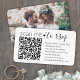 Compartilhe uma de suas fotos de noivado ou casamento e simplifique as respostas de RSVP com cartões de gabinete de código QR modernos de chic. Imagem e todo texto são simples de personalizar, incluindo texto que diz "digitalize-me para rsvp". Para fazer seu próprio código QR usando o gerador, basta digitar o URL do site no modelo. Ao digitalizar o cartão com seus telefones, os convidados são enviados diretamente para o site do casamento para responder ao convite. Um processo de rsvp on-line reduz a chance de que as cartas sejam perdidas no correio. Também é mais versátil, na medida em que você pode pedir informações mais detalhadas, como escolhas de refeições, alergias à comida e pedidos de música. Todas as informações de resposta podem ser personalizadas ou excluídas. O design preto e branco apresenta um coração bonito, tipografia moderna minimalista, caligrafia manuscrita e uma fotografia da sua escolha. Este cartão é uma forma na moda de pedir aos convidados do casamento que respondam gentilmente à sua próxima comemoração especial.