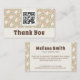 Show your appreciation with this stylish business thank you card featuring a trendy retro wavy pattern in organic tones. Designed for creative entrepreneurs and small business owners, this card includes a customizable QR code to encourage repeat customers to visit your website or leave a review. Its modern, boho-inspired aesthetic makes it a perfect insert for shipping packages or handing out at events.