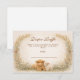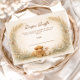 Um charmoso design rural com um bezerro fofinho, um cordeirinho doce e pintinhos amarelos aninhados entre flores silvestres macias de um prado. O fundo de pergaminho quente e tons terrosos suaves criam uma atmosfera rústica aconchegante com um toque de conto de fadas. Folhas delicadas enquadram o layout enquanto a ilustração de animais da fazenda adiciona calor e personalidade. Perfeito para uma celebração neutra com tema rural e charme clássico de fazenda.