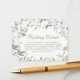 Adicione um toque da natureza aos seus convites de casamento com este cartão de detalhes de folhas de água rústicas. Apresentando um belo design com folhas verdes delicadas e sotaques de aquarela suave, este cartão é perfeito para compartilhar informações essenciais como direções, acomodações e detalhes de RSVP com seus convidados. A escrita elegante e o tema natural fazem dele um encantador aditamento à sua suíte de papelaria de casamento. Personalize com seus detalhes específicos para garantir que seus convidados estejam bem informados e impressionados com seu planejamento ponderado. Ideal para casamentos rústicos, florestais ou botânicos.