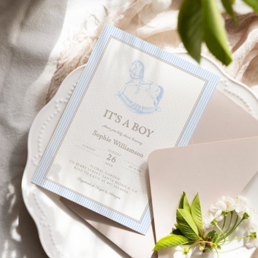Rocking Horse Blue Toile De Jouy Baby Shower Criado por Mariana Sunak