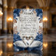 Enhance your formal invitation suite with this "Something Blue" insert, featuring romantic swans and vintage florals for a timeless, elegant aesthetic.This design features a pair of illustrated swans facing inward, symbolizing devotion, framed by a lush arrangement of watercolor florals. The color palette utilizes deep navy and dusty blue roses contrasted against warm taupe and earthy brown foliage. These elements are set against a soft cream background that visually simulates the look of aged parchment or vellum. The typography combines a sweeping, formal calligraphy script for the header with a traditional serif font for the body text, ensuring high legibility.Please note that this is a flat printed image with a printed parchment texture effect; it does not contain actual vellum, raised embossing, or physical paper texture.