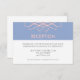 Este cartão de confirmação de presença de casamento elegante apresenta enfeites de quartzo rosa em uma faixa azul serenidade na parte superior. A cor azul pode ser alterada para qualquer cor disponível.