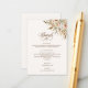 O romance de um casamento de Outono é capturado neste design elegante, apresentando rosas em aquarela e folhagens em cores quentes de outono, como terracota, marfim, ferrugem, castanha, azul poeirento e verde sage com toques de brilho dourado. Este design também apresenta gráficos de texto exclusivos em uma fonte de caligrafia personalizada com cor que pode ser personalizada no editor de design.