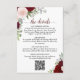 Este belo cartão de cercado de casamento foi projetado para lhe dar espaço extra para qualquer informação que seus convidados precisem, incluindo registro, recepção, viagem, acomodações, etc., assim como um código QR personalizável direcionando seus convidados para seu site para obter mais informações. A placa apresenta um design bócio rústico com rosas de aquarela pintados manualmente em tons de vermelho, burgundy e rosa-pincel. O título é escrito em letras elegantes e lê "os detalhes". A parte de trás é uma cor vermelha viva e marmoreada, com um aglomerado de flores iguais, juntamente com folhas de eucalipto e verde de jardim.