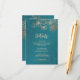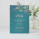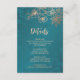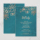 Cartão De Informações Rose Gold Floral Line Art Teal Wedding
