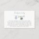 O Cartão de Acompanhamento para o Livro de Aquarela de Roupas Simples de Menino é um belo complemento para os seus convites de chá de bebê. Com texto moderno em letra fina, letras elegantes e uma doce linha de roupas em aquarela com roupas de bebê menino desenhadas à mão, este cartão oferece uma maneira minimalista, mas encantadora, de convidar os convidados a contribuir para a primeira biblioteca do bebê. Um toque atencioso e elegante para qualquer celebração!