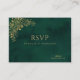 Real Emerald Green Dourado Código Floral QR de Casamento RSVP de Receptáculo. Esta placa de gabinete RSVP é um toque de elegância moderna! A frente tem um belo fundo verde esmeralda com delicados florais de ouro. Diz "RSVP" de forma na moda, seguida dos nomes dos casais e da data do casamento. As costas também são esmeraldas verdes, adoradas com as mesmas flores adoráveis. Há um código de QR prático que o leva a um site especial com todos os detalhes sobre o casamento. É uma maneira elegante e conveniente de conseguir os RSVPs dos seus convidados!