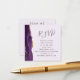 A borda esquerda deste elegante e moderno cartão de cerimônia de núpcias apresenta uma borda agitada com cor d'água roxa, aparada com falso brilho dourado. O título é exibido no script de escrita manual de cinzas de carvão, com texto personalizável abaixo na fonte de impressão em um plano de fundo de lavanda. Carregue o código QR do seu site de casamento para substituir a imagem de amostra no verso, enquadrado pelas palavras "digitalize-me para RSVP".