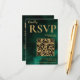 Cartão De Informações RSVP de Código QR de Casamento Verde e Dourado do
