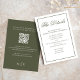 Eleve a sua papelaria de casamento com esta elegante placa de resposta RSVP, com uma combinação perfeita de script de caligrafia de na moda e design de tipografia clássica. O tema da cor verde-oliva adiciona um toque de elegância moderna à sua suíte, complementando perfeitamente o estilo formal e sofisticado do seu casamento. Com um conveniente código QR para detalhes de casamento e opções de RSVP on-line, os convidados podem acessar facilmente seu site de casamento e as simples acomodações de convidados. Uma inserção de papelaria na moda para aqueles que apreciam a beleza e funcionalidade do eterno.