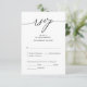 Esta é a bela placa de gabinete de caligrafia Elegante moderna, RSVP (Respond), em preto, onde você pode editá-la, mudá-la de cor e formatá-la de acordo com sua exigência de design, com opções de refeição, assentos reservados, atendimento de números e opção de solicitação de música. #TeeshaDerrick