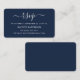 Cartão De Informações RSVP de Script Simples Azul e Branco do Marinho Mo