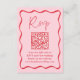 Cartão De Informações RSVP em Código QR com Moldura Ondulada Rosa e Verm