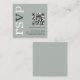 RSVP Online de Casamento de Feriado do Código QR Um pequeno compartimento quadrado de 2,5" para incluir ao enviar seus convites para uma maneira conveniente de seus convidados para o rsvp. Substitua o código QR de amostra por seu próprio, para gerar sua pesquisa de código "gerar código QR" on-line. Um design tipográfico moderno com RSVP em grande tipografia em Ivory com o "v" em cinzas, rotacionado e à esquerda sobre um fundo de verde-claro-sábio.