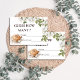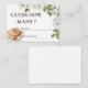 O "Rustic Baby is Brewing Coffee Adivinha Quantas Placas de Gabinete" apresenta um charmoso design com uma ilustração de café no canto inferior esquerdo e delicadas flores brancas no topo. Convidam-se os convidados a adivinhar quantos grãos de café ou outros pequenos itens estão em um pote, adicionando uma atividade divertida e interativa ao chá de fraldas.