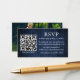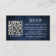 Placa RSVP de Casamento Simples e Moderno com seu Código QR. Impressão de Madeira Azul no País Russo. Foto de volta.