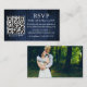 Cartão De Informações Rustic Blue Wood Weding QR Photo RSVP