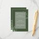 Apresentamos a nossa encantadora carta vertical de detalhes do casamento, onde elegância encontra a natureza em perfeita harmonia. Um quadro de forma oval macio e meticuloso adornada com verde-mato, erva-viva, samambaias, e muito mais, belamente colocado contra um fundo verde-esmeralda escura e mesmerante. Capturar a essência de uma fuga romântica da floresta com este convite atordoante que deixará seus hóspedes sem fôlego. Os intrincados detalhes da folhagem das penas evocam uma sensação de beleza natural, enquanto a matiz profunda acrescenta um elemento de sofisticação e atração. Foi projetado para dar o tom para seu dia especial, acenando para seus entes queridos para uma celebração imersa em verde-luxuoso e na serenidade da natureza. Cada elemento do design é cuidadosamente curado para criar uma experiência visual harmoniosa, deixando uma impressão duradoura nos seus convidados. Este design incorpora a essência do romance e da beleza natural. Serve como um maravilhoso guardião para seus convidados, um lembrete tangível da magia que eles irão testemunhar no dia do seu casamento. Escolha esta design para definir o palco para uma celebração que entrelace elegância e natureza sem problemas. Vamos ajudá-lo a criar uma primeira impressão inesquecível, quando embarcar numa viagem de amor e alegria. Este cartão faz parte do pacote de cartas de casamento da Folhagem Verde da Rússia Fern.