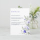 O cartão de cerimônia de núpcias apresenta um design floral impressionante com flores azuis e marfim, complementado por folhagem verde sobre fundo branco. A palavra "DETAILS" aparece de forma destacada no topo, fazer-a clara e fácil de ler. Este cartão é perfeito para fornecer aos convidados informações essenciais sobre a recepção de casamento e as acomodações, combinando a praticidade com uma bela estética. É uma adição ideal a qualquer pacote de convite para casamento, oferecendo estilo e funcionalidade.