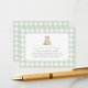 Request that baby shower guests bring a books instead of a card with this elegant sage green gingham enclosure card.