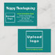 Feliz Dia de Ação de Graças! Feriado para celebrar neste novembro para agradecer pelas bênçãos que recebemos. É também um dos feriados para divulgar o seu negócio. Cartão incluso que você pode personalizar para colocar a marca da sua empresa e com uma saudação de Ação de Graças. Personalize-o e use-o para cumprimentar seus clientes ou clientes neste Dia de Ação de Graças e como material de marketing para divulgar seu negócio ou promover o nome da sua marca. Você também pode usá-lo como acessório de material de embalagem do seu produto. Cartão incluso personalizável que você pode usar para construir a conscientização do nome da marca. As cores do design são textos branco e verde-amarelo em fundo verde-teal. Para personalizar este cartão incluso, envie seu logotipo, digite o nome da sua empresa, endereço, número de telefone, e-mail e site ou página de mídia social da sua empresa. Por favor, verifique a aparência nos lados frente e verso após enviar o logotipo e digitar os textos. Se a aparência for agradável para você, você pode fazer o seu pedido agora. Se você precisar redimensionar e mover o logotipo e os textos para caber neste cartão incluso ou no tamanho que você escolher, por favor, altere na ferramenta de design. Você também pode alterar a cor do fundo, cor da fonte e estilo da fonte na ferramenta de design. Feliz Dia de Ação