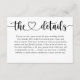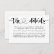 Cartão De Informações Simple Black & White Heart Wedding Details