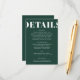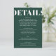 Procurando um cartão de detalhes de casamento moderno e elegante? Opte pelo nosso Cartão de Detalhes de Casamento Simples Verde Esmeralda em Negrito. Com caligrafia em negrito que adiciona um toque de sofisticação, este cartão de detalhes em verde esmeralda oferece uma aparência limpa e simples. Este cartão de detalhes de casamento minimalista tem um toque moderno que certamente cativará aqueles com um olhar para a sofisticação sutil.