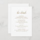 Cartão clássico de cerimônia de núpcias com um simples design com o cabeçalho em um roteiro tradicional junto com seus detalhes em um elegante ouro falso sobre um fundo branco. Este sofisticado cartão de cerimônia de casamento é excelente de um casamento formal com cores neutras.