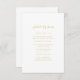 Este simples e elegante plano de casamento de ouro de um cartão de cerco de eventos é perfeito para o seu casamento moderno minimalista de branco e ouro. O design apresenta fonte mínima de ouro contemporâneo acompanhada de caligrafia formal. Mantenha-o como está, ou escolha personalizá-lo com seu próprio trabalho de arte ou fotos!