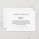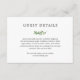 Cartão de gabinete Boho Wedding com um design simples com uma impermeabilização pintada com uma cor d'água sob o cabeçalho editável que diz "Detalhes do convidado". Esta carta de casamento botânica é excelente para um primavera de estilo rústico ou casamento de verão.
