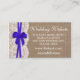 A coleção de casamento do arco azul rústico é uma design com um adorável fundo de efeito de burlap rustic com um romântico efeito de renda branca vintage e uma fita azul escura e espantosa com arco. Essas cartas de inserção do site de casamento podem ser personalizadas para sua ocasião especial e fariam a inserção perfeita para qualquer suíte de casamento rústico, chá de panela, festa de noivado, festa de aniversário e muito mais. Essas placas podem ser usadas para criar Cartões de Detalhes, Cartões de Informação Convidados, Cartões de Alojamento, Cartões de Direção, Registro de Presente ou Cartões de Poço de Vestir, bem como Cartões de Cerimônia e Recepção. *Observe que o Zazzle só vende cartões impressos para que essas placas não tenham nenhum material real de burlap, renda, fita ou arco.
