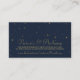Estes cartões de inserção são perfeitos para qualquer casal planejando uma celebração romântica de casamento. O design apresenta um fundo azul de marinho na moda com estrelas elegantes em queda de ouro e com uma redação editável correspondente. O design simples pode ser personalizado para se adequar ao seu evento especial e será o cartão de inserção perfeito para qualquer festa temática moderna, incluindo chás de panela, noivados, chás de casamento, festas de aniversário e muito, muito mais.