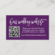Script de Pincel moderno. Cartão de Gabinete de Site de Casamento Simples Minimalista com o seu Código QR. Roxo