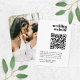 Cartão simples, no site de casamento de na moda, de fotos no estilo design minimalista moderno, com uma tipografia retrô em preto clássico e branco escrita em estilo informal. O texto pode ser facilmente personalizado com seus nomes, site de casamento, código de QR digitalizável e mensagem para um único design de casamento gentil para manter seus amigos e família atualizados sobre seu próximo dia especial. Se você precisar de ajuda para personalizar este produto, entre em contato comigo usando o botão de mensagem e terei todo o prazer em ajudá-lo.