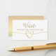 Simples, minimalista, moderno, cartão de acompanhamento de site de casamento branco clássico com coração de corda dourada romântica.