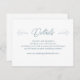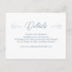 Detalhes do casamento em conchas do mar cartões de inclusão. Use para fornecer aos convidados informações pertinentes sobre o evento. Duas conchas whelk relâmpago decoram a parte superior ao lado do texto "Detalhes". Todo o texto é na cor azul marinho. Um site de casamento pode ser incluído para direcionar os convidados para mais informações, para responder online e ver as fotos de noivado como preferir. Este cartão vem em outros tamanhos e com mais opções de papel. O papel metálico prateado elegante é mostrado aqui, que é mais caro.