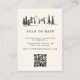 O cartão quente de marfim combina com o nosso casamento e os convites para eventos da rustic chic Mountain Sketch, e apresenta uma pequena ilustração de picos de montanha e pinheiros verdes. Personalize com a data de RSVP desejada e as instruções para RSVP no seu site de casamento. Atualize o modelo de código QR com a URL desejada para permitir que os convidados digitalizem e RSVP facilmente.