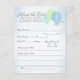 Festa de bebê de balões de ar quente em azul e verde, Tudo sobre o jogo da festa de bebê com previsões e perguntas sobre o bebê a caminho.