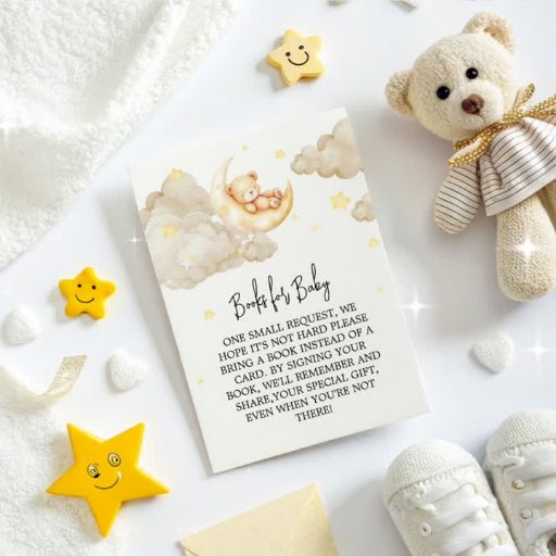 Adicione diversão e praticidade à sua comemoração com este cartão de rifa de fralda do tema da Lua. Apresentando um doce ursinho debaixo de um cheio de estrelas e luas ouros, é um lembrete gentil para os convidados trazer um pacote de fraldas para uma chance de ganhar um prêmio. Esta design celestial complementa o resto de sua coleção de chás de fraldas neutra em termos de gênero de forma magnífica.